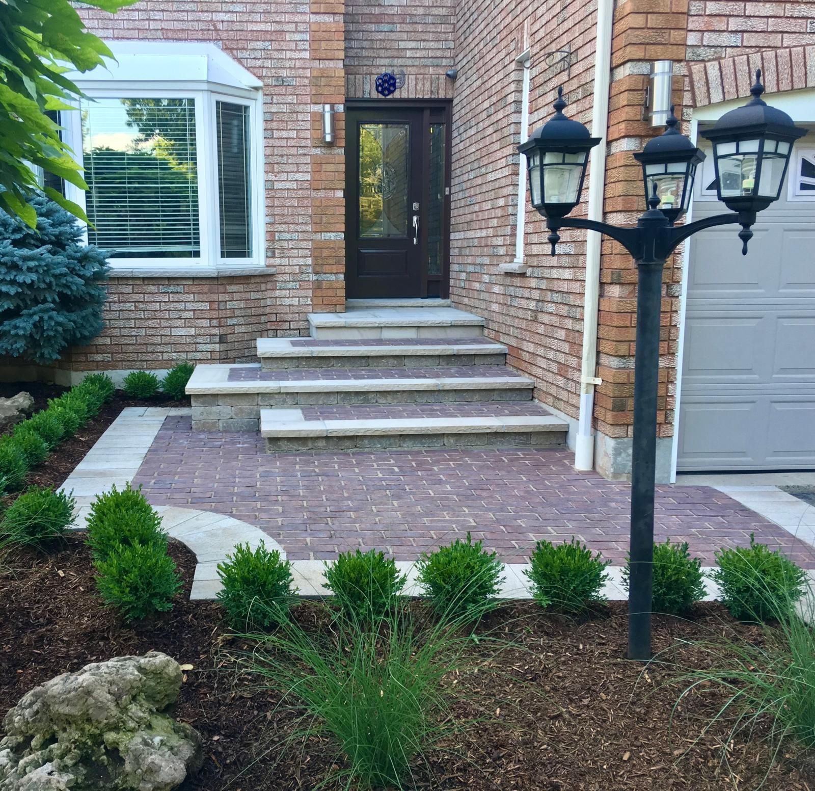 Fulcrum Landscape was one of 3 companies to quote on fixing our front stairs and landing. From the beginning Mark was professional and prepared. He visited the site where we discussed the issues with the sunken steps and grading of the area. He provided a quote and picture to complete the work along. They even found a short term solution for our driveway until we can get it completely repaved. As they did the work they patiently answered my questions and provided explanation of their process of leveling, tamping, placing of the stones and setting.